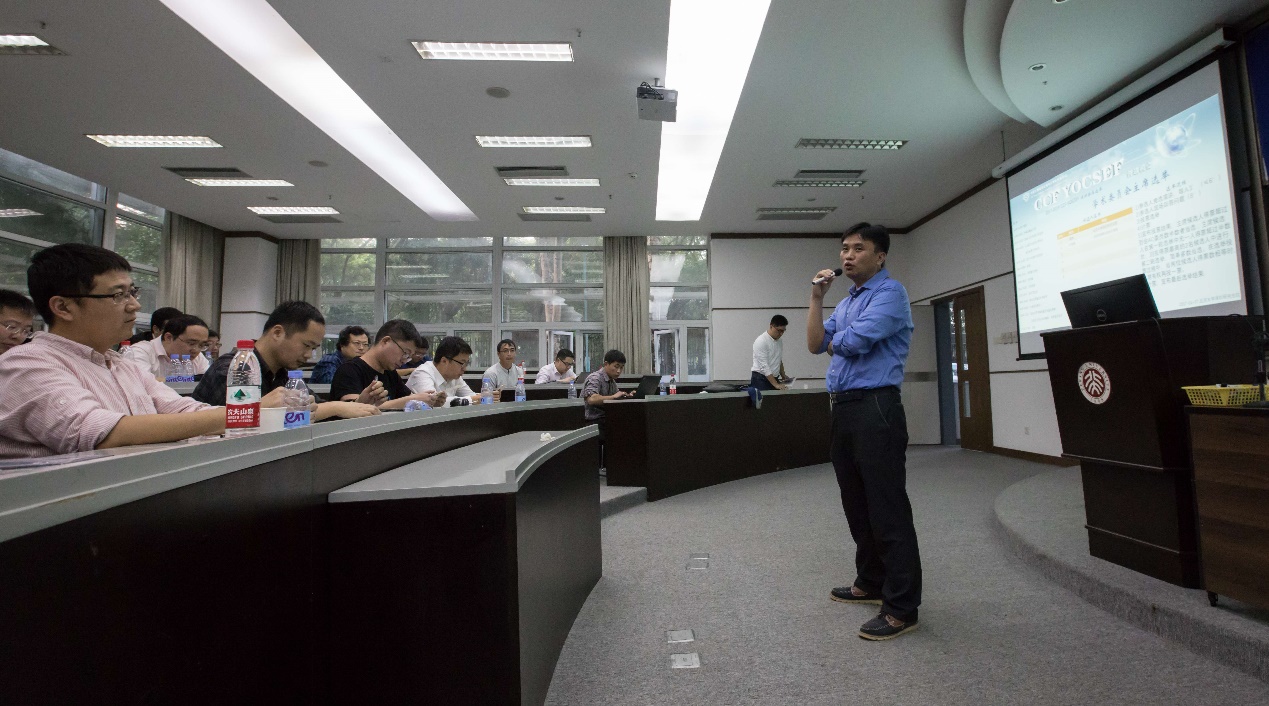 2017-2018年度 CCF YOCSEF深圳分论坛换届选举大会于下午14:30在北京大学深圳研究生院C栋125隆重举行。会议由CCF YOCSEF深圳AC委员郑毅主持。会议首先由CCFYOCSEF总部AC委员王韬做了题为“创造机会,成就未来”的YOCSEF文化培训。王韬以一种轻松而又不失严谨的风格向大家传递了YOCSEF的文化,包括主席轮值、讲究规则、平等称呼、精心策划、竞争与友谊等制度。他强调CCF YOCSEF希望能够承担起一些社会的责任,虽然我们很年轻,但是我们有自己的声音,希望以青年人的热情、能力去传播思想,传承文化,扛起CCF人的社会责任与使命。