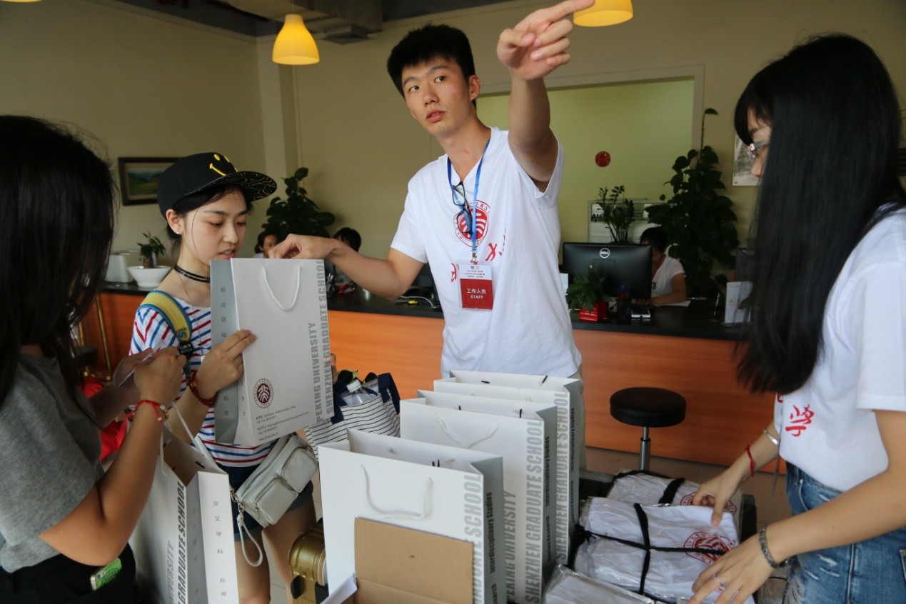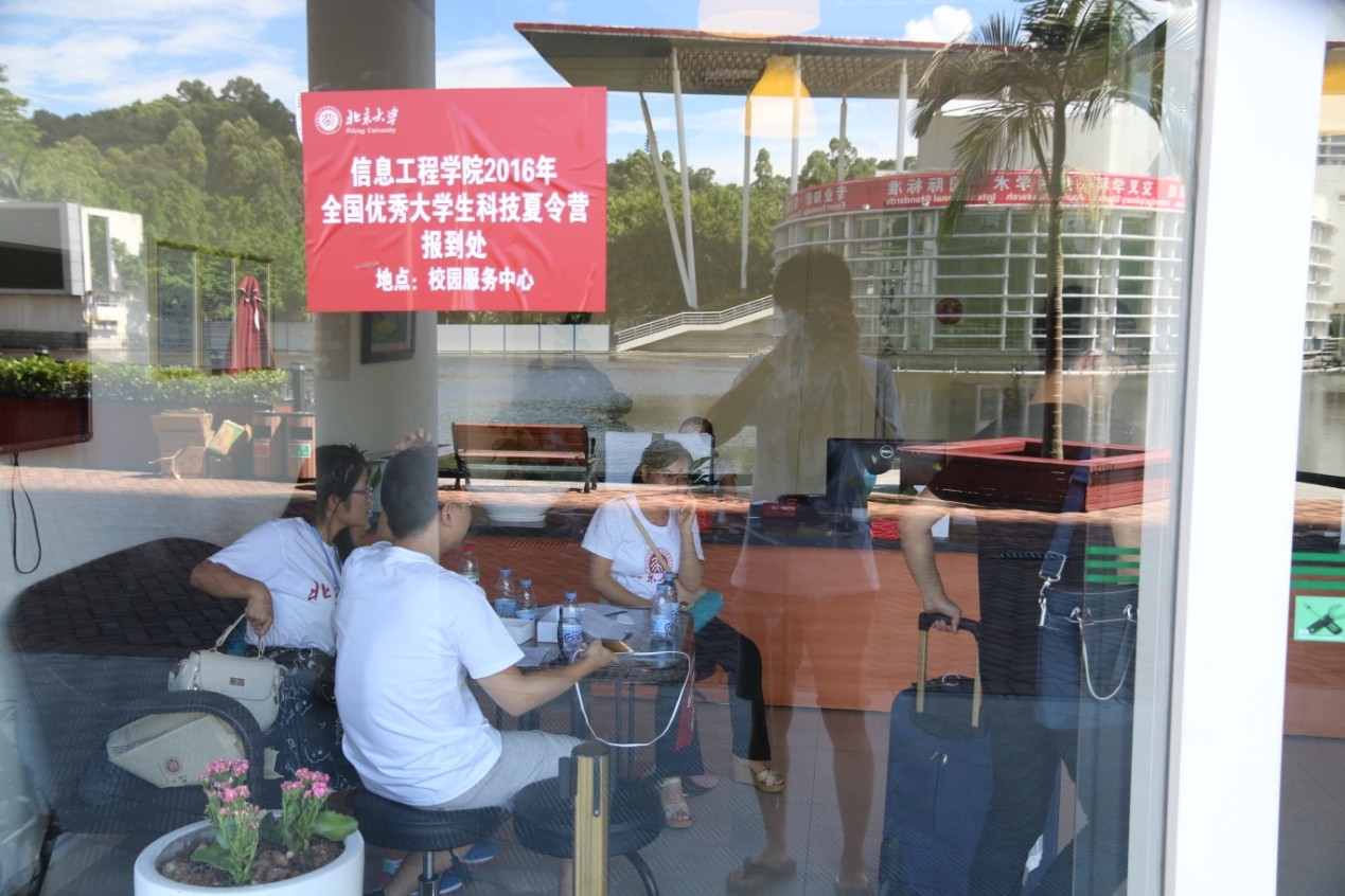 夏令营营员报到处设在校园活动中心,营员首先进行登记报到,然后领取活动过程中的需要用到的物资。