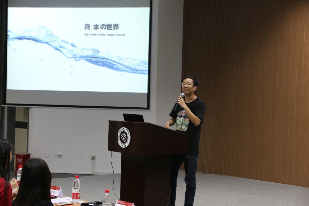 19点整,主持人李育原同学宣布比赛正式开始,热烈的掌声随即引爆全场。按照抽签顺序首先上场的是类成祥同学,他给我们带来的演讲是“唯能论”,简言之,就是一切都可以用能量来解释,这是一个与我们所接受的现有的理论完全不一样的观点,令在场所有听众耳目一新。然后,李辰同学用风趣幽默的语言带我们进入了一个别具一格的“水世界”。紧接着是石涧同学的“内在的探索”,告诉我们人生的历程对心灵的影响,以及对内心深处的探索。