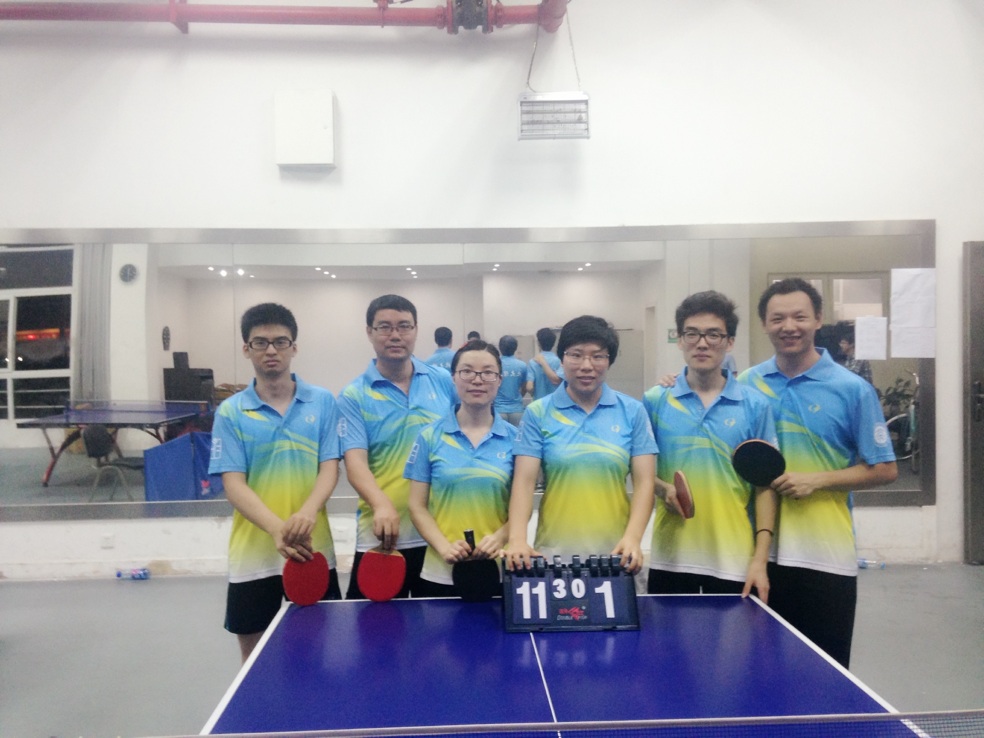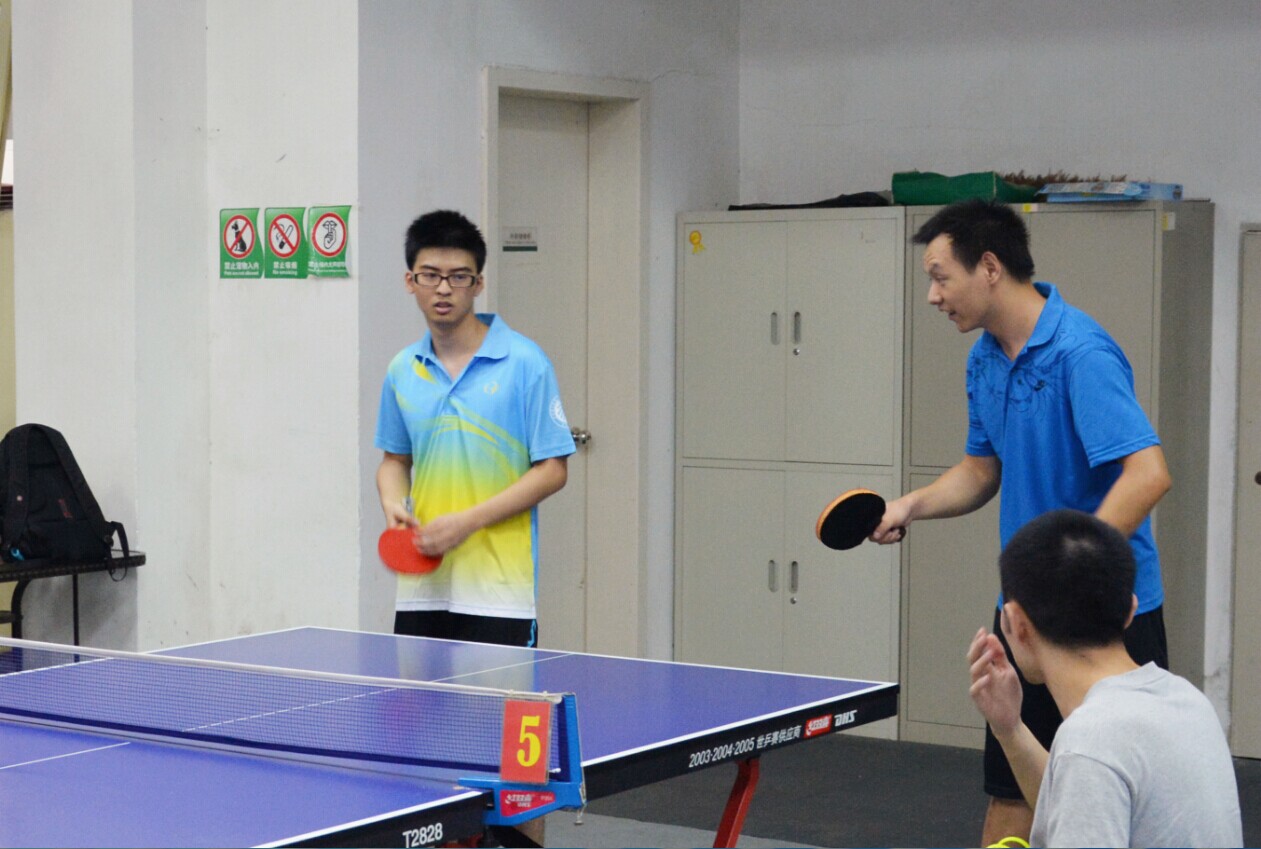 在与上届冠军汇丰1队对赛中,我院选手毫不畏惧,先后派出我院 “第一发球好手”张博士、女单王国英,实力非凡的新生章明和李俊茂,前任乒协会长战立飞等猛将出战,我院选手们在比赛中愈战愈勇,打出了气势,打出了水平,最终以3:1最终力克强敌,杀入决赛。