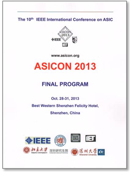 2013年10月28日至31日, IEEE国际专用集成电路会议(IEEE International Conference on ASIC, 简称ASICON)2013在深圳富临大酒店举办,来自全球的十几个国家的数百名专家、学者参加了本次盛会。