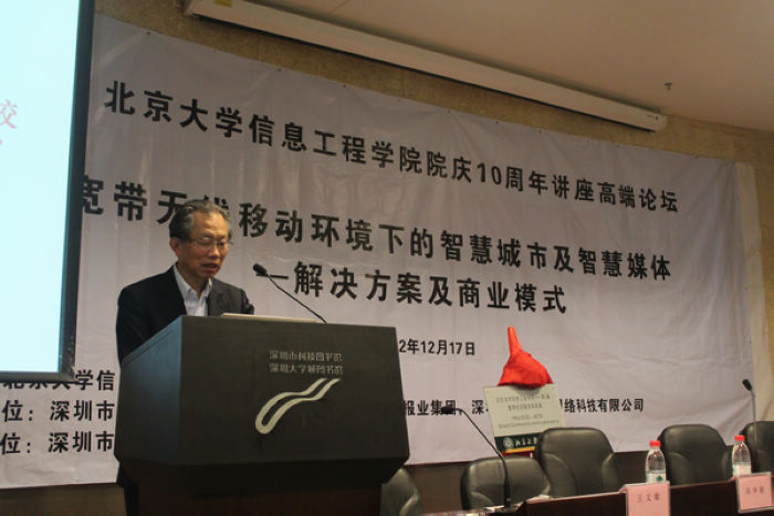 作为伟德体育官网院庆10周年系列活动的“宽带无线移动环境下的智慧城市及智慧媒体——解决方案及商业模式”讲座及高端论坛于12月17日在深圳大学城图书馆成功举行,伟德体育官网常务副院长王文敏教授主持了本次论坛,北京大学深圳研究生院常务副院长史守旭教授为论坛致辞。