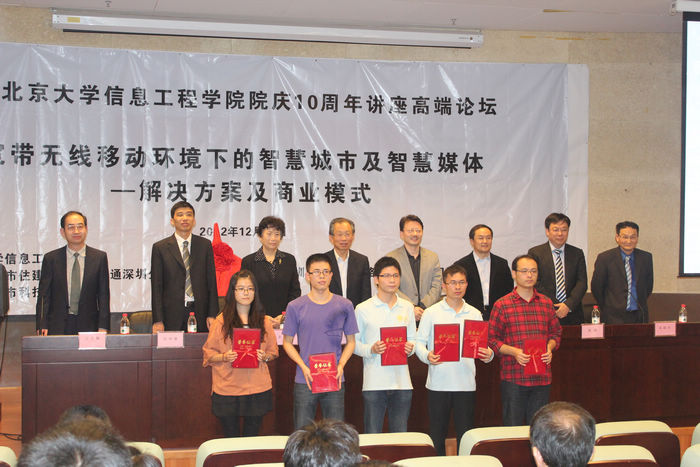 在本次论坛上,为表彰我院伟德体育官网研究生在中国联通深圳分公司提供的创新基金资助下,在宽带无线移动及智慧城市的理论及应用研究方面所取得的科研成果,举行了“中国联通奖学金-科研创新奖”颁奖仪式,获奖的项目是:“智能视频监控系统的设计与实现”(一等奖:罗桂波,张清,黄转娣);“移动校园信息推送系统的设计与实现”(二等奖:张华兵,罗桂波); “基于WBAN的医疗信息采集安全认证与传输”(三等奖,马利民)。