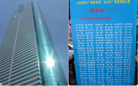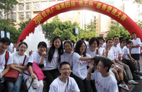 “欲穷千里目,更上地王楼!”11月15日下午,北京大学深圳研究生院150多名同学,来到深圳第一高楼地王大厦,参加了2008信兴广场第四届“地王杯”慈善登楼大赛。