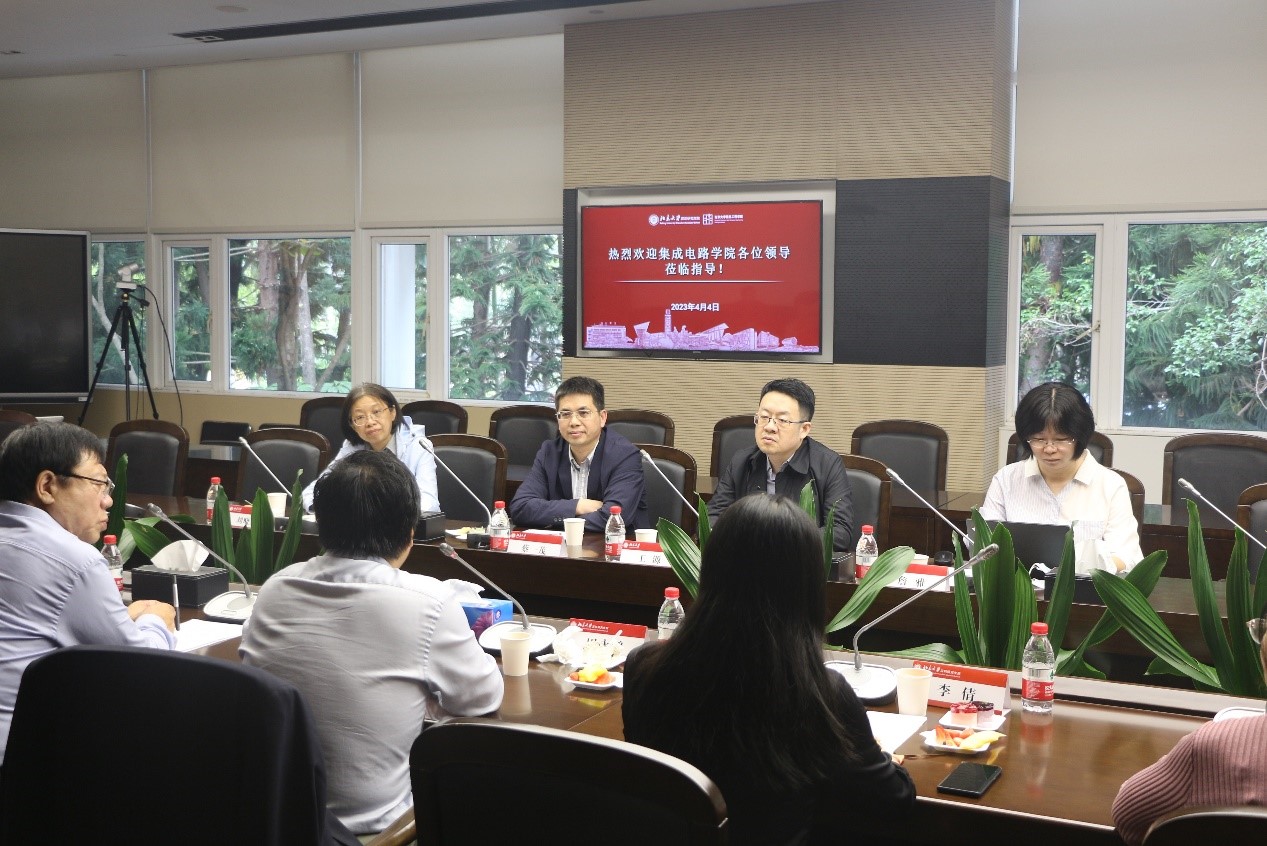 2023年4月4日,北京大学集成电路学院院长蔡一茂、党委书记王源、副院长刘晓彦等一行来到北京大学深圳研究生院(以下简称“北大深研院”),对北大集成电路学科的南北联动进行研讨。北大深研院常务副院长杨震、伟德体育官网院长田永鸿、伟德体育官网副院长杨玉超、李倩,以及深研院教务处处长林宏海、人事处副处长李燕红、科研处孟祎老师等参加了本次会议。
