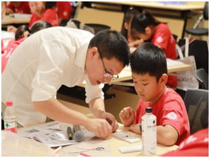 志愿者对营员进行实验指导