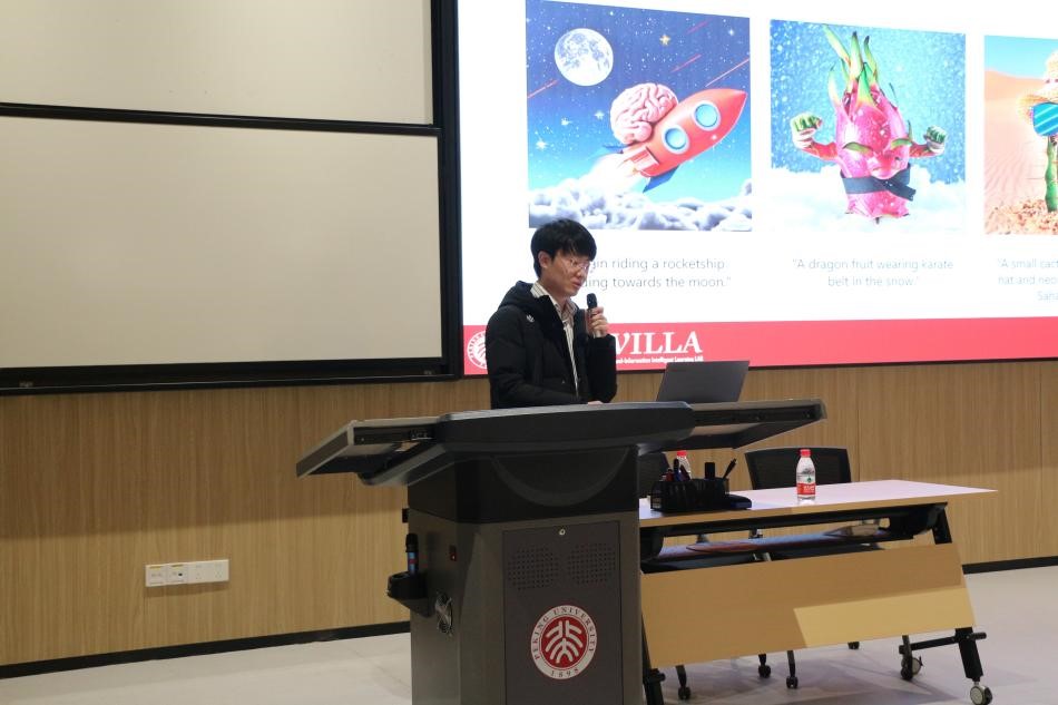 牟冲同学聚焦Text-to-Image问题,介绍了Stable Diffusion(SD)模型在图像生成方面的优势,并阐述了该模型在生成图片结构方面仍具有一定的改进空间。基于此,牟冲同学等提出了T2I-Adapter方法,希望能在不改变SD模型的生成能力的前提下,为SD提供更精准的生成控制。该方法主要建立在“扩散生成过程中图像的主体信息在迭代早期过程就已确定”的基础上,实验表明,该方法可以对图像生成结果实现更精准的控制,并且也具有一定的泛化性。该文章累计引用量173次,GitHub开源代码累计2.8K次Star。汇报结束后,同学们就模型对图像生成结果的控制程度等方面提出了一些问题。老师们对T2I-Adapter的巧妙设计表示肯定,同时也针对模型在其他数据集的迁移能力提出了一些疑问,牟冲同学都一一给予了回答。