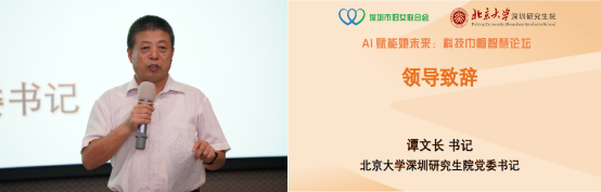 北京大学深圳研究生院党委书记谭文长代表深研院对深圳市妇联邹月娴执委AI工作室的成立表示祝贺。谭文长对女性科技工作者在高等教育和科技创新中的重要作用给予高度认可,并表示女性在教育、科研以及管理等多个领域发挥着不可或缺的作用。他倡导为女性科技人才创造更多发展机遇,推动性别平等与科技创新同步发展。