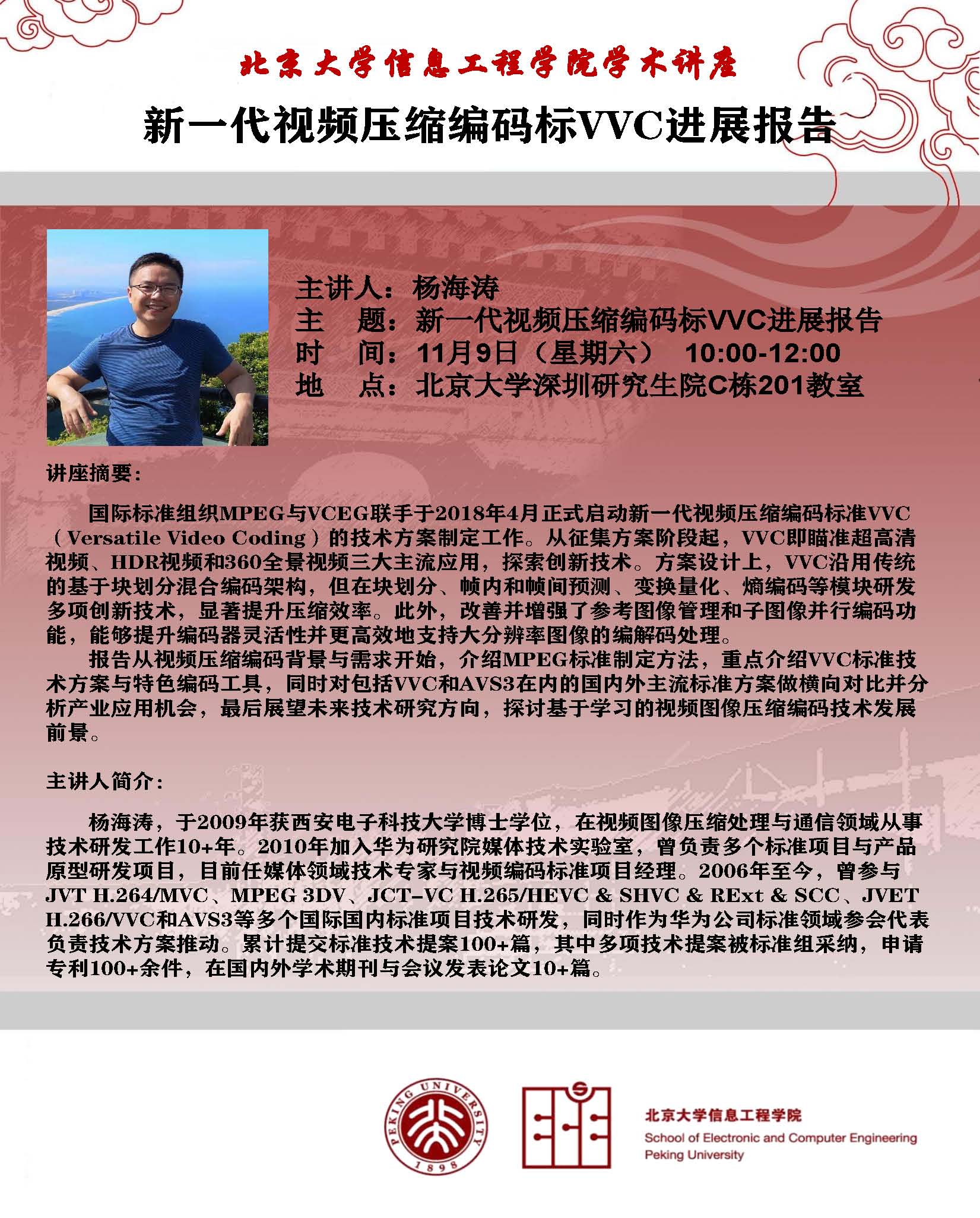 【学术讲座】杨海涛博士(华为研究院):新一代视频压缩编码标VVC进展报告