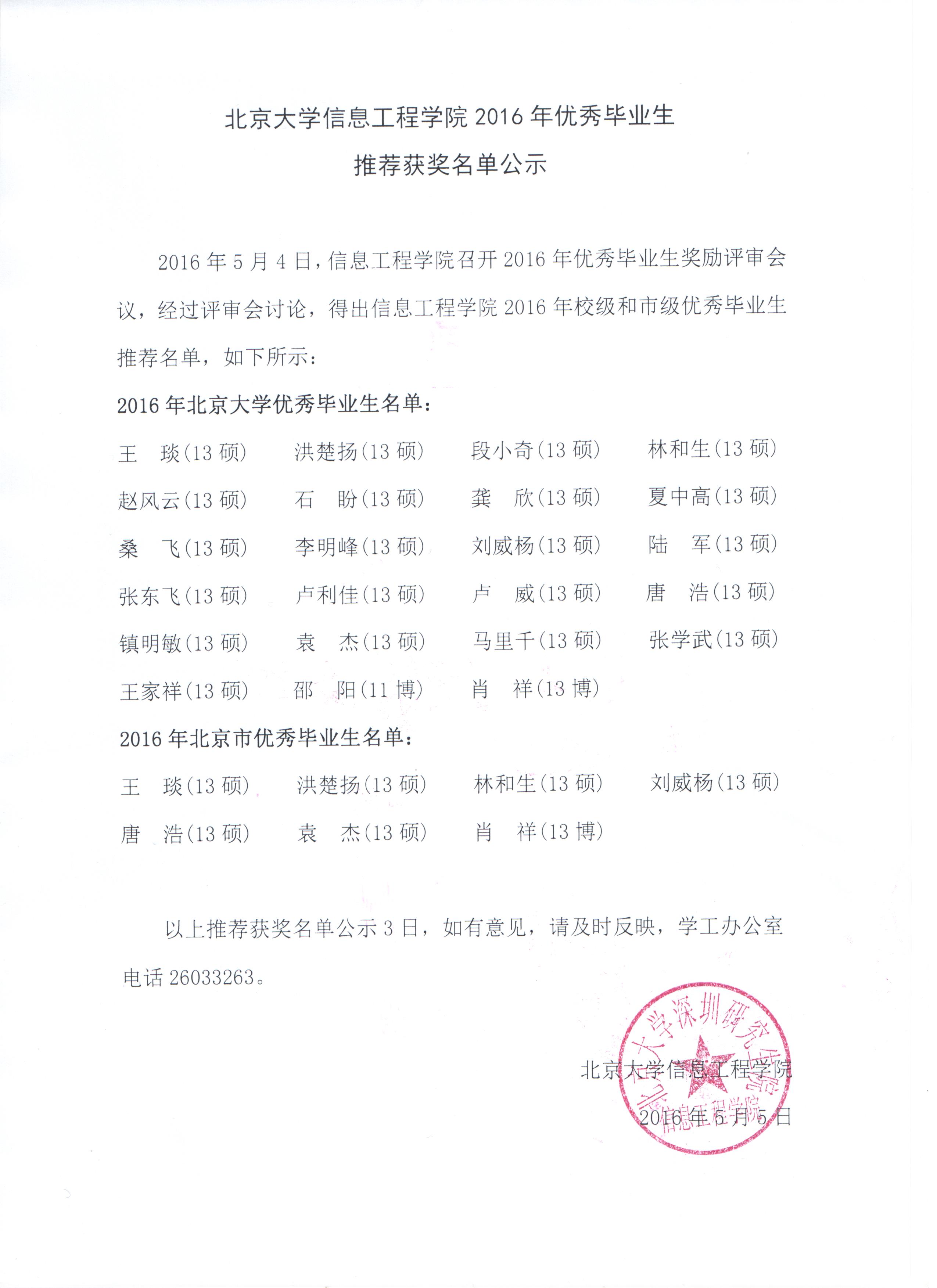 伟德体育官网2016年优秀毕业生推荐获奖名单公示