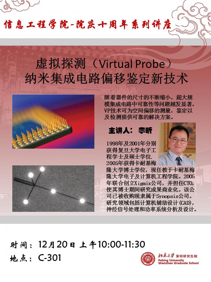 【伟德体育官网院庆十周年系列讲座】李昕 博士:虚拟探测(Virtual Probe)纳米集成电路偏移鉴定新技术