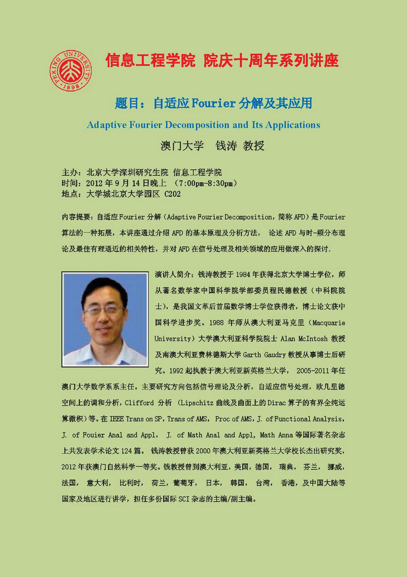 【伟德体育官网院庆十周年系列讲座】钱涛教授:自适应Fourier分解及其应用