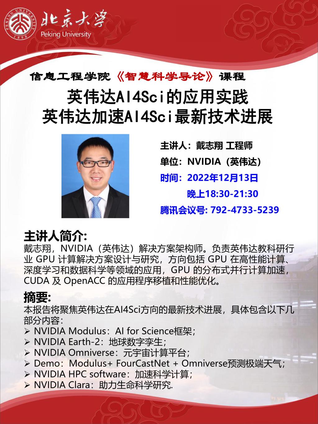 【学术讲座】戴志翔:英伟达AI4Sci的应用实践;英伟达加速AI4Sci最新技术进展