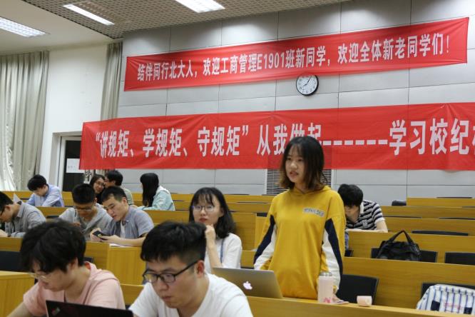 2019年4月2日晚19:00,伟德体育官网计算机专业的全体同学和辅导员、班主任在D栋阶梯教室开展了主题为“讲规矩、学规矩、守规矩-从我做起”的主题班会。现场互动有趣,同学们沉浸其中,热情高涨。